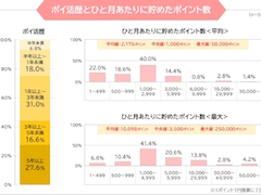 また、ポイントを貯める秘訣については、ひと月あたりに貯めたポイント数が「平均1000〜2999ポイント」と答えた人が多いことから、生活スタイルに合ったポイ活で、小額で継続して取り組むことが大切だと分析しています。
