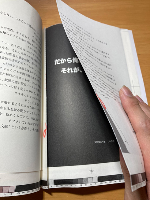 ただ、あまりにも複雑怪奇な本ゆえ、こちらのミスもあって何度か本当に乱丁落丁させてしまった苦い経験もあります。印刷会社さんとしても、正しく意図する通りに乱丁落丁させるのは、とても大変だったようです。