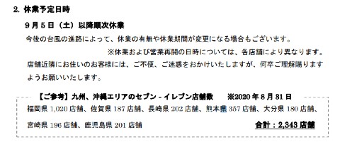 なお九州エリアのセブン-イレブン店舗は合計2343店舗。半数近くが計画休業を予定していることになります。