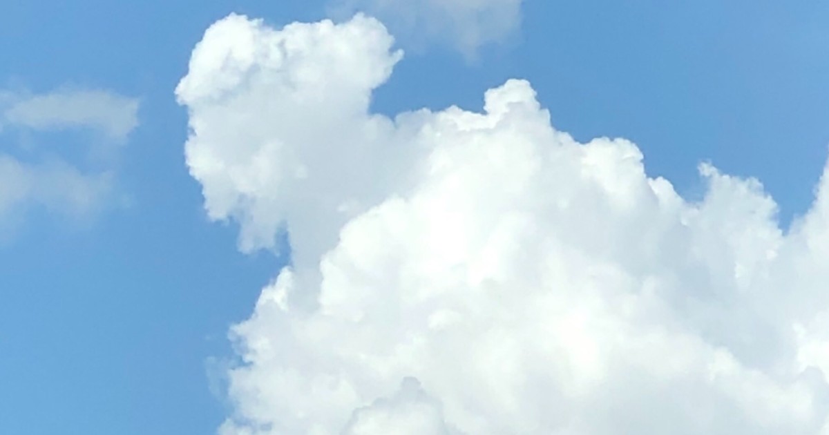 松本さんが公開した写真は、青空をバックに夏らしいもくもくとした雲が浮かんだ1枚。なんとなく上の方に耳があるようにも見えますが、見方によってはどうとでもとれる写真に、ファンも困惑しているようです。