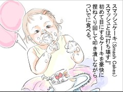 息子さんの1歳の誕生日のお祝いとケーキにまつわるお話を描いた漫画「スマッシュケーキ」がちょっと悲しい……でも、笑えます! 作者は麦(@mugichopoko)さんです。