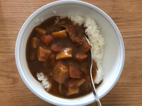 実験に使ったご飯はボンカレーをかけて食べました。うまいな〜
