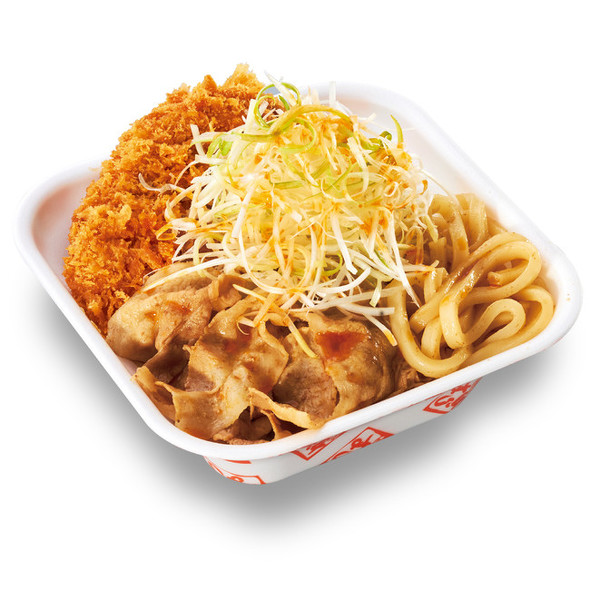「豚すき煮肉うどんチキンカツ丼」は、その名の通り豚バラ肉・チキンカツ・うどんを盛り合わせた豪華な丼。かつや特製の丼タレで煮込み、白髪ねぎと辣油でピリ辛に仕上がっています。