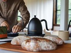 「Brewista Artisan Gooseneck Kettle」は40〜100度まで1度単位で設定でき、用途に合わせたお湯を用意できる電気ケトル。注ぎ口は細く、注湯量やスピードをコントロールできるところから、コーヒー愛好家から支持を得ています。