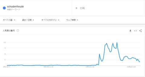 過去7日間のGoogleでの「schadenfreude」の検索数の変化