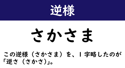 この逆様(さかさま)を、1字略したのが「逆さ(さかさ)」。