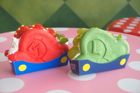そんなカフェで注文できるスペシャルメニューは、「マリオの帽子 〜イチゴのショートケーキ〜」と「ルイージの帽子 〜ぶどうのレアチーズケーキ〜」の2種類のパンケーキサンド、そして「マリオのいちごクリームソーダ」「ルイージの青りんごクリームソーダ」「ピーチ姫の桃クリームソーダ」の3種類のフルーツクリームソーダ。