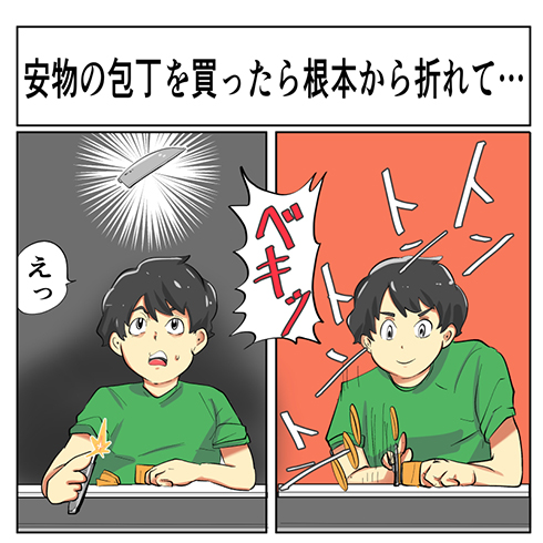 「刃は宙を舞ったのち足元数センチの所にドスっ」