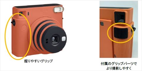 カメラの形状は正方形のフォルムをベースにグリップに丸みを持たせて握りやすくしているとのこと。
