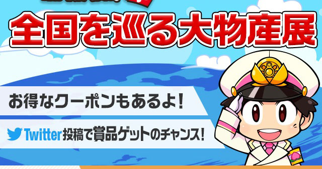 また、商品をお得に購入できるクーポンを配布し、「桃太郎電鉄」のオリジナルTシャツや日本各地の名産品が当たるTwitterキャンペーン「桃太郎電鉄×楽天市場 全国を巡る大物産展 開催記念 #ふるさと味自慢 フォロー&RTキャンペーン」も開催予定です。
