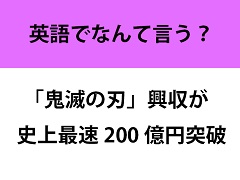 Q.「鬼滅の刃」興収が史上最速200億円突破って英語でなんて言うの?