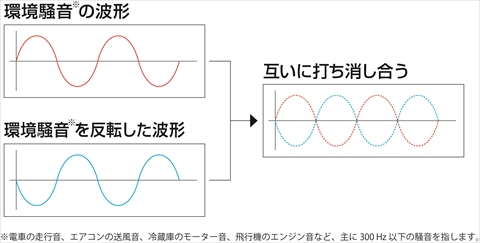 内蔵された小型のマイクロフォンで周囲の環境騒音を収音し、マイクで拾った騒音とは逆位相(逆向き)の音波を発生させて騒音を相殺する高精度アクティブノイズキャンセリング機能を搭載。人の声やアナウンス、着信音など必要な音は聞き取れる一方、空調音などの騒音を最大約20dB (同社独自の測定法による)カットできるといいます。この機能は本体をケースから取り出すと自動的にオンになります。