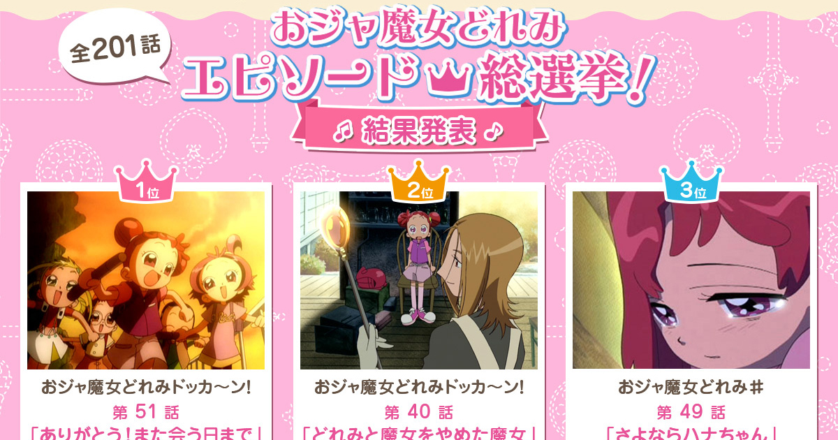 テレビシリーズ「おジャ魔女どれみ」全201話の中から、ファンが好きなエピソードを選ぶ「おジャ魔女どれみエピソード総選挙」の結果が発表に。上位3位が明かされ、当時を思い出したファンから感きわまる声が多数寄せられています。