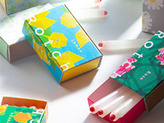 デザイナーのサワラ(@ogasawara991025)さんがデザイン・個人制作したモックアップで、先端の発火部をこすりつけて着火できるマッチのようなアロマキャンドルを提案しています。