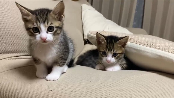 ソファの心地よさを知った子猫たち フカフカの感触に目を輝かせる姿が無邪気でかわいい