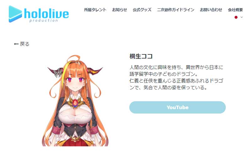 YouTubeチャンネル「Coco Ch. 桐生ココ」