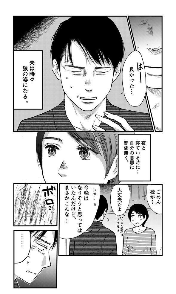 人狼であることを隠して生きてきた正臣は、つい本音をさらけ出すことから逃げてしまいます。妻を傷つけるのは絶対に嫌だけど、でも本当は……。