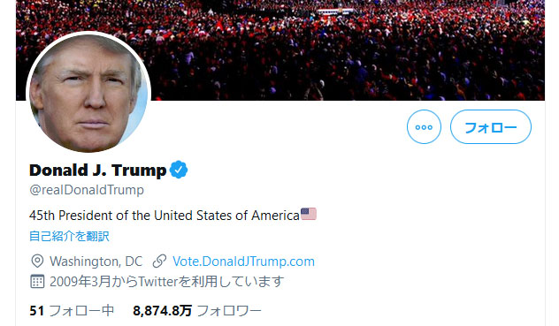 トランプ氏のTwitterアカウント(@realDonaldTrump