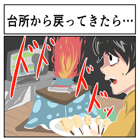 こたつで串揚げを作ろう→キッチンで食材を準備しているあいだに……