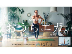 話題となったのはオンラインのヨガ・フィットネス講座「SOELU」の広告。タブレットで受講するエガちゃんとともに、インストラクターの映る画面を片隅に掲載しています。実はこの画面、拡大してよく見ると時計の時刻が「2:50」――サービスのイメージだけでなく、演者のアイデンティティまでアピールするとは!