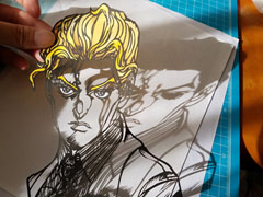 投稿主のカッパ(@kazurindagane)さんは、カラー切り絵の制作過程をよく撮影しているそうで、昼間の作業中に撮ったのがこの1枚。強い日差しが影をきれいに落とし、川尻浩作そっくりの形を作り出しました。影ゆえに金髪が黒髪に変わり、黒目がちになったせいかもしれませんね。