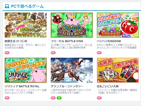 PC版GREEのゲーム(グラブルはスマホでもプレイ可能)