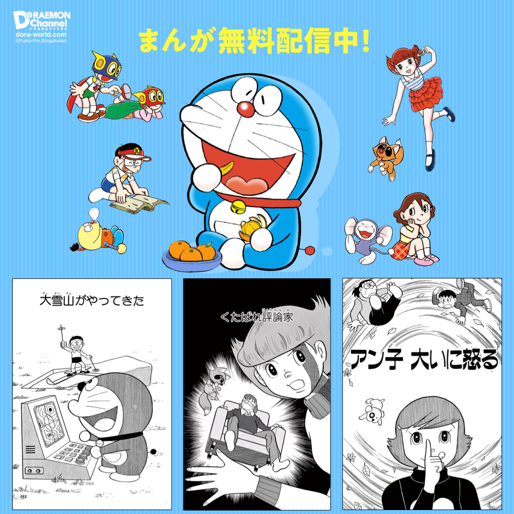 ドラえもん公式サイト「ドラえもんちゃんねる」で2月17日から期間限定で「大雪山がやってきた」(てんとう虫コミックス『ドラえもん』19巻収録)、「くたばれ評論家」(てんとう虫コミックス『エスパー魔美』1巻収録)、「アン子 大いに怒る」(『藤子・F・不二雄SF短編集Perfect版』2巻収録)の3作品が無料公開されています。ネットでも有名な『エスパー魔美』のあのエピソードが!