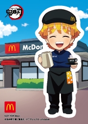 限定クルーシールでは、炭治郎はクルーに、禰豆子はおもてなしリーダーに、善逸は“McCafe by Barista”クルーに、伊之助はデリバリークルーに、義勇としのぶはマネージャーにふんしています。