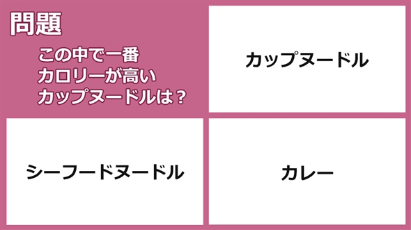 問題:この中で一番カロリーが高いカップヌードルは?