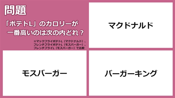 知っていればちょっとお得かも? 身の回りの数字について毎日出題していくコーナー。今日は「ポテトLのチェーン店ごとのカロリー」をテーマに見てみましょう。