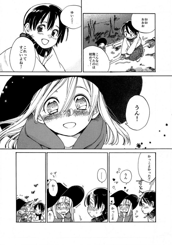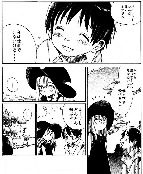 パイロットの父を持つ久太には、自分も空を飛びたいという夢がありました。魔女の自分を避けようとせず、箒に乗れるようになった姿を父に見せたいと頑張る久太に、ゆいこはいつしか友情以上の感情を覚えるように。