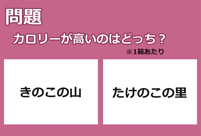 問題:「きのこの山」と「たけのこの里」どっちのカロリーが高い?(※1箱あたり)