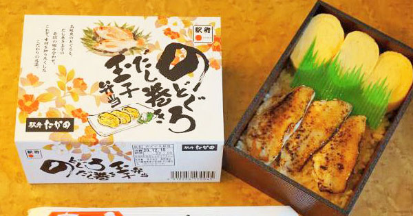 高野商店でもさまざまなのどぐろを使った駅弁を積極的に開発していて、「のどぐろだし巻き玉子弁当」(1180円)もその1つです。
