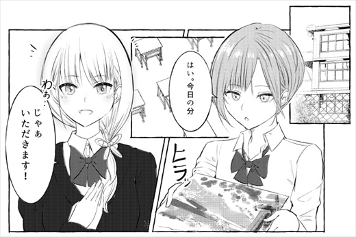 「誰かが手作業で描いた絵」しか食べられない体質の女の子と、彼女のために絵を描く女の子の漫画が、不思議で優しい世界を作り出しています。作者はイラストや漫画をWebに投稿しているシマシ(@morinosato_smsm)さん。
