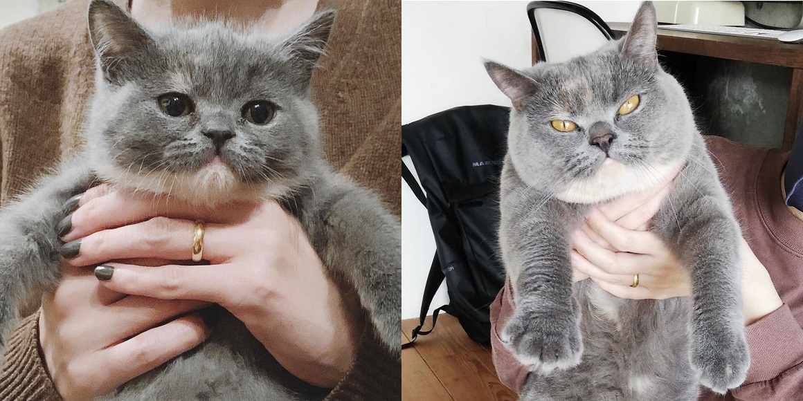愛猫の比較写真をInstagramに投稿したのは、RISATO TERASHIMA(@shimeji8graphics)さん。愛猫の名前は「ふぐ」ちゃん、通称「おふぐ」ちゃんです。
