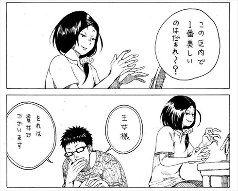 「鏡よ鏡……この区内で1番美しいのはだぁれ〜?」と、鏡に問いかけるママ。「区内」に限定するところがなかなか謙虚です。鏡役のパパの答えはもちろん、「それは貴女でございます」。