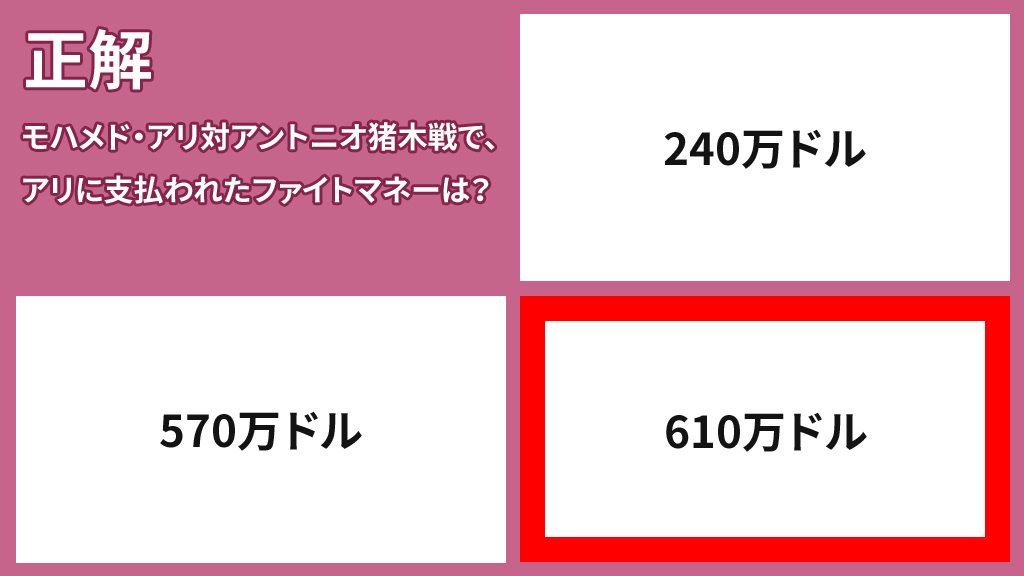 答え:610万ドル(当時のレートで約18億3000万円)