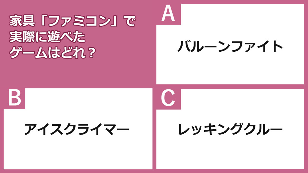 問題:家具「ファミコン」で実際に遊べたゲームはどれ?
