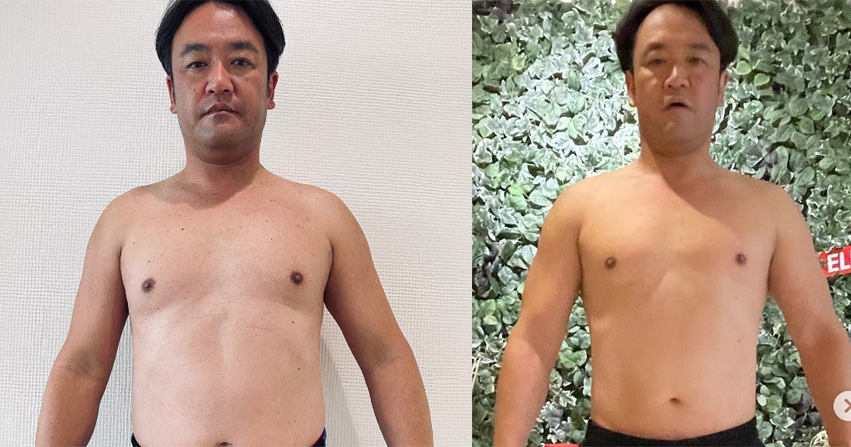 たむらさんは2月中旬、「2カ月で10キロ痩せてやる!」と目標を掲げてパーソナルトレーナーをつけた肉体改造をスタート。約束の2カ月が過ぎたこの日の投稿では、「目標にしてた2カ月で体重10キロ減は達成出来ませんでした。5キロ減しか出来ませんでした」と目標達成はならなかったものの、「これで今はええと思ってます」と報告。「お陰様でええ身体になってまいりました」とたるんだ体が見事に引き締まったことが分かるビフォーアフター写真を公開しています。これは大成功といっていい変化だ。