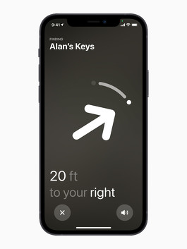 また、iPhone 11とiPhone 12には「正確な場所を見つける」機能を追加。AirTagが近くにある場合に限り、超広帯域テクノロジーを駆使してその正確な方向を探し当てられるようになります。