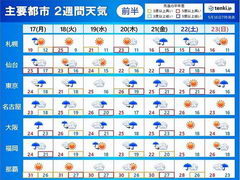 最高気温は九州から関東では25度前後の日が多いでしょう。湿気が多く、ムシムシしそうです。東北や北海道でも週の前半は25度くらいまで上がる日があり、汗ばむくらいとなるでしょう。沖縄は厳しい暑さが続きそうです。熱中症にご注意ください。