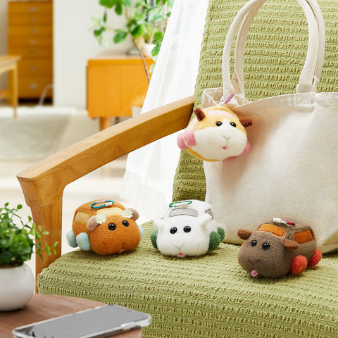 「PUI PUI モルカー ぬいぐるみポーチ」は、バッグなどにつけられる約9センチのポーチ。こちらはポテト、シロモ、テディ、チョコの4匹からお迎えできます。