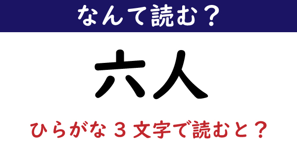 【なんて読む?】今日の難読漢字「六人」(ひらがな3文字で読むと?)