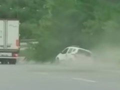 無謀すぎるあおり運転 高速道路で走行中のトラックとケンカを始めたミニバン、執拗に煽るも路肩に追いやられて自滅