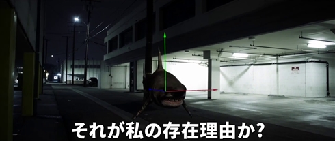 3DモデルのXYZ軸を露出したまま街を徘徊するサメ