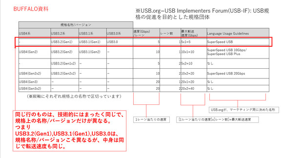 その1つが、USBのバージョン名による違い……というよりも、「名前が違うのに中身は一緒」なパターンがあまりに多い事実です。