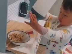牛乳「ザバァ……」 1歳の男の子のシリアル作りが豪快すぎて笑うしかない