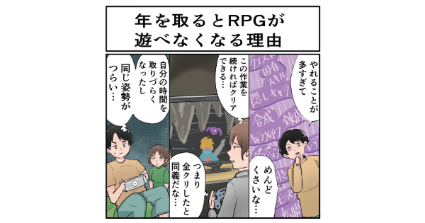 若いうちにはピンと来ない「〇〇歳を過ぎるとこうなる」と言われるアレコレについて、いろいろな人に聞いてみよう、という読者募集企画。今回のテーマは「“年を取るとRPGが遊べなくなる”って、具体的にはどんな感じ?」