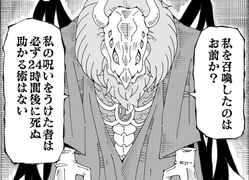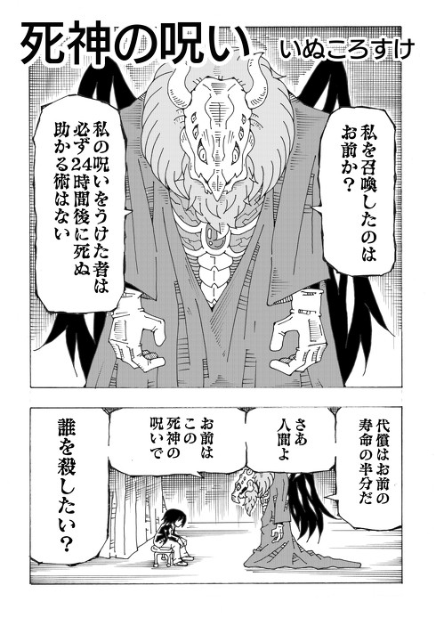 「私の呪いをうけた者は必ず24時間後に死ぬ」「お前はこの死神の呪いで誰を殺したい?」――。巨大な体に黒い翼、動物のような頭蓋骨から6つの目が覗く異形の死神は、自分を召喚した男性にそう尋ねます。