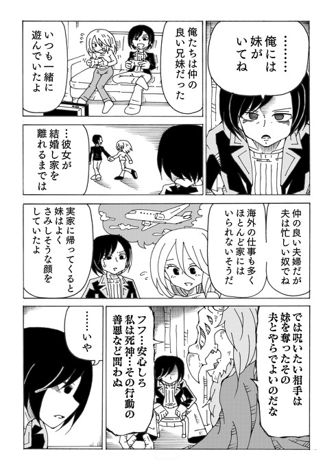 それを聞いた死神は「では呪いたい相手は妹を奪ったその夫とやらでよいのだな」と推察します。しかし……